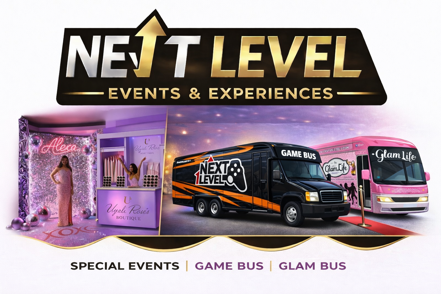 From high-energy game trucks and backyard parties to glamorous buses, Sweet 16 showstoppers, and luxury venues—we elevate every celebration with seamless style, excitement, and unforgettable experiences